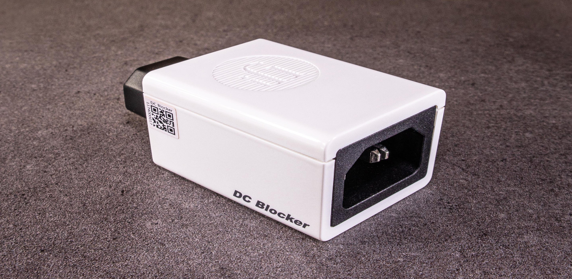El Bloqueador de CC es un dispositivo inteligente que se coloca en el IEC (en la entrada de alimentación trasera) y, como su nombre lo indica, evita que la CC entre al amplificador. Por lo tanto, elimina el zumbido del transformador del amplificador.